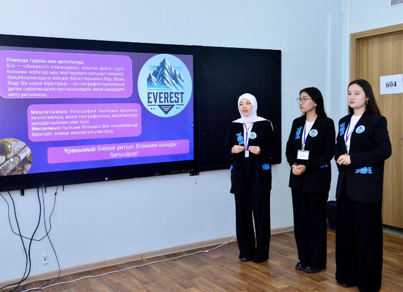 I place: Team «Alatau» of Kazakh National Pedagogical University named after Abay (Turgalieva Guldana Timurkyzy, Maksut Zhazira Muratkyzy, Kaderzhanova Ayagoz Adilzhankyzy); II place: «Everest» team of L.N. Gumilev Eurasian National University (Aknur Maratkyzy Murat, Ayaulym Kanatbekkyzy Kuttymuratova, Sakyp Gazizovna Isenova) and «Geo Global» team of Al-Farabi Kazakh National University (Ibrashimov Ibragim Ibrashimovich, Amina Orynbekkyzy Nigmetova, Meyrbek Zharkynuly Makhsotov); III place: Team «Geoniy» of Karaganda University named after academician E.A. Boketov (Aiganym Ashirbekova, Dosan Illyas Zhandosuly, Amankeldikyzy Asyltas), team "Kyzylzhar" of North-Kazakhstan University named after M. Kozybaev (Ilyushin Kozybaev, Dosan Ilias Zhandosuly, Amankeldikyzy Asyltas). Kozybaev (Ilyushina Anastasia Alexandrovna, Aigerim Erlanovna Akhmetova, Amangeldi Syunkar Bagdatuly) and the team «Ertis» of the University named after Toraigyrov (Kinzhikov Daniyar Tulegenovich, Әbylash Ayimgul Meyrambekkyzyzy, Rakhmanberdiyeva Bakhytgul Shadiyarovna).