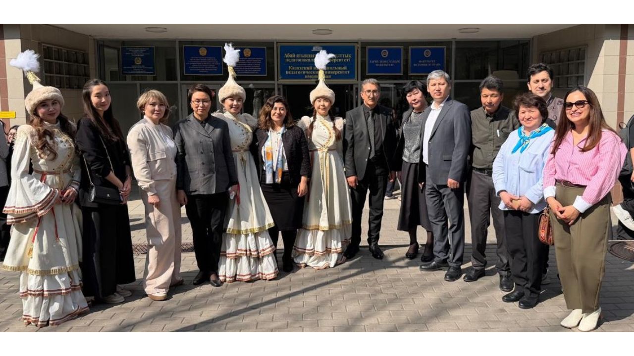 A CEREMONIAL OPENING CEREMONY FOR THE TURKISH LANGUAGE DEPARTMENT WAS HELD AT THE ABAI KAZAKH NATIONAL PEDAGOGICAL UNIVERSITY On 7 April 2026, a grand opening ceremony for a specially equipped Turkish language lecture theatre was held in Building No. 10 at Abai Kazakh National Pedagogical University. The event was attended by Tuba Alan Özdenfeder, Consul General of the Republic of Turkey in Almaty, Shükür Köse, Head of the Education Attaché’s Office at the Consulate; Aigul Iskakova, Vice-Rector for Strategy and Internationalisation at the University; Bayan Sapargalieva, Director of the Department of International Cooperation; Dean of the Faculty of World Languages, Edilbay Ospanov; Head of the Department of Oriental Philology and Translation, Kulsin Abdrakhmanova; Professor A. Zhumabekova; Turkish language lecturers E.Z. Esbosynov, G. Satbay, A. Abuova, D. Ashimova, N. Kospaganbetova, as well as guest lecturer and volunteer on the teaching exchange programme, PhD Zhennet Altundash. In her congratulatory speech, Tuba Alan Özdenfeder, the Turkish Consul General in Almaty, noted that the lecture theatre had been named after Karamanoglu Mehmet Bey, a statesman of the Turkish people. Shükür Köse, Head of the Education Attaché’s Office at the Turkish Consulate General in Almaty, emphasised that the Turkish language classroom was the result of joint efforts by the Turkish Consulate General in Almaty, the Turkish Education Attaché’s Office and the administration of the Faculty of World Languages at Abai University. In her congratulatory speech, Vice-Rector Aigul Iskakova expressed her gratitude to the department’s administration and the Turkish language lecturers. In his address, Dean of the Faculty Edilbay Ospanov highlighted the importance of teaching the Turkish language within the field of education. The speakers noted that, in the context of international relations, Turkey and Kazakhstan are major strategic partners, and that humanitarian cooperation between the two countries is steadily developing. It was emphasised that this cooperation is clearly evident in the various forms and areas of agreements between higher education institutions. Particular attention was drawn to the fact that cooperation between Abai Kazakh National Pedagogical University and Turkish higher education institutions takes the form of academic mobility programmes, exchanges of expertise among academic staff, and the organisation of international conferences and seminars. Following the opening ceremony, the Head of Department, Kulsin Abdrakhmanova, PhD in Philology, presented letters of appreciation to Tuba Alan Özdenfedekar,