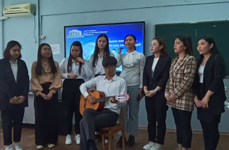 05.04.2023 Event "Scientific Way" On April 4, 2023, within the framework of the Decade of Science, teachers of the Department of Biology of the Institute of Natural Science and Geography Rimma Izbasarova, Nazim Bekenova, Saule Jamilova and 2nd year students of the specialty "Biology" of the Kazakh and Russian departments (3,4,7 groups) held the event "Scientific Path ". The students got acquainted with the scientific works of professors Zhumadil Childebaev, Zeine Tungushbaev and Doktorkhan Aidarbaev. A new book "Encyclopedia of Biology" by Zhumadil Childebaev was also presented. The event ended with a concert program prepared by the students themselves.