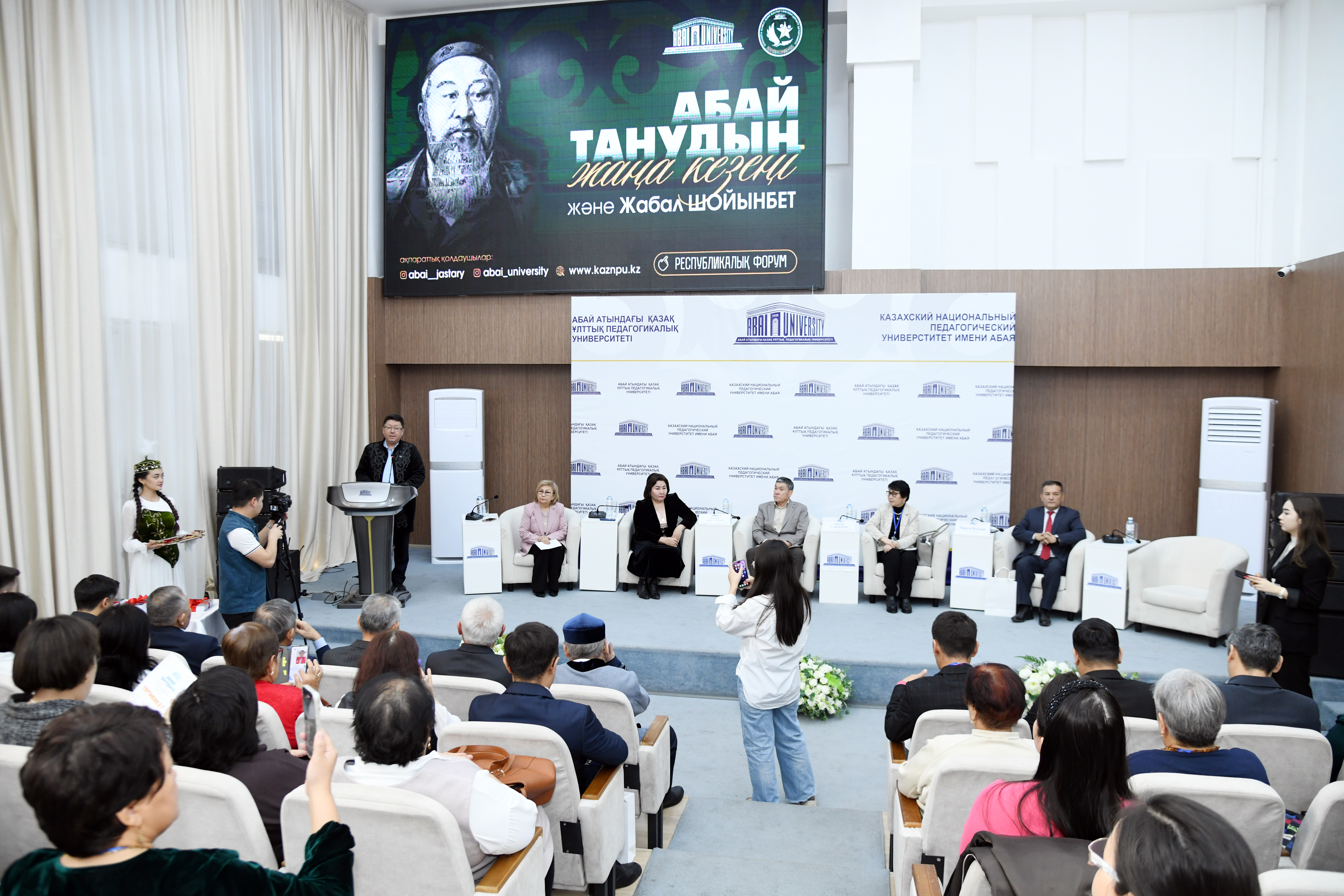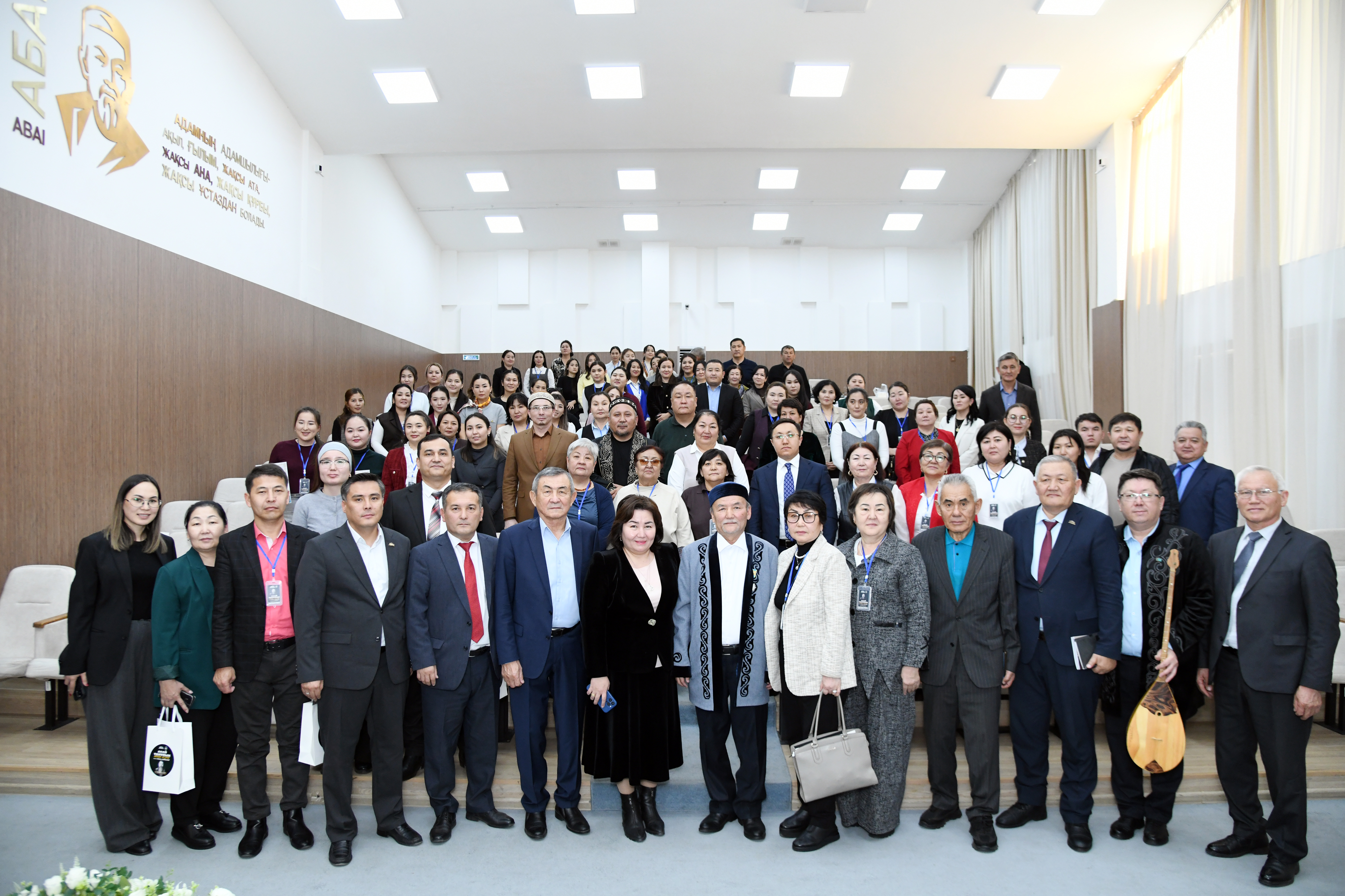 A republican forum titled “A New Stage of Abai Studies and Zhabal Shoinbet” was held, dedicated to the 180th anniversary of Abai Kunanbayuly and the 70th jubilee of the prominent Abai scholar Zhabal Shoinbet. The forum was attended by leading scholars of the country, representatives of the intellectual community, teachers of the “Abai Studies” course in secondary schools, and students. The event was opened by the Vice-Rector for Academic Affairs, Banu Narbekova, who emphasized the importance of researching Abai’s heritage in the development of national spirituality. To deepen the scientific and practical content of the forum, the moderator was the well-known Abai scholar Dauren Mukhamadiev. During the event, two scientific collections compiled by Zhabal Shoinbet were presented: “Study Abai, Be Amazed” and “Mekemtas Myrzakhmetuly – Along the Path of Abai.” The books were presented by State Prize laureate of Kazakhstan Orazaly Sabden, Deputy Chairman of the Committee of the Ministry of Science and Higher Education of Kazakhstan Akerke Abylaikhan, Vice-Rector for Academic Affairs Banu Narbekova, and notable scholars Dandai Iskakuly and Baltabai Abdigaziuly. These works were recognized as important tools that bring fresh impetus to the teaching of Abai studies. The forum featured insightful presentations devoted to relevant areas of Abai studies. In her report “The Foundation of the Perfect Human — Justice,” Akerke Abylaikhan linked the concept of justice in Abai’s teachings with state development strategies, citing the statements of President Kassym-Jomart Tokayev on the rule of law. She highlighted the significance of Zhabal Shoinbet’s work “The Perfect Human” in the context of modern humanities. In his presentation “Abai and the Future of Kazakhstan,” Orazaly Sabden comprehensively discussed the impact of Abai’s legacy on the country’s development and outlined proposals for its further advancement. Literary critic and scholar Dandai Iskak focused on the distinctive aspects of Zhabal Shoinbet’s research, while Törali Kydyr, Director of the Islamic Research Institute under the SAMK, examined Islamic values in Abai’s worldview. Zhandos Aubakir offered new concepts regarding contemporary scientific directions in Abai studies, and Eldar Kakenuly analyzed the legacy of writer Kamen Orazalin in connection with the intellectual world of Abai. These reports provided highly valuable and insightful information for “Abai Studies” teachers from secondary schools of Almaty and the Almaty region, specially invited to the forum. They were also presented as effective methodological approaches to teaching the subject. At the conclusion of the event, adviser to the Chairman of the Board–Rector of Abai Kazakh National Pedagogical University, Khairulla Nyshanuly, delivered a congratulatory speech on behalf of the university, draped a traditional chapan over Zhabal Shoinbet, and presented him with the “Abai” badge on the occasion of his 70th anniversary. In addition, distinguished scholars and guests attending the forum presented jubilee gifts on behalf of their institutions. This scientific gathering at the republican level became an important forum that provided an opportunity to reinterpret Abai’s heritage, identify a new stage in Abai studies, and discuss the place of the national idea “The Perfect Human” in modern humanities. By outlining future directions for comprehensive research of Abai’s creative work, participants formed a shared vision regarding the prospects for the development of Abai studies in Kazakh spirituality.