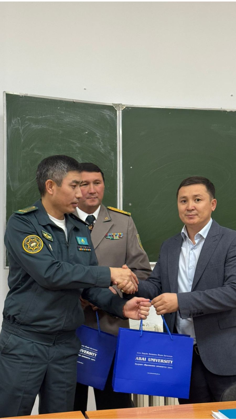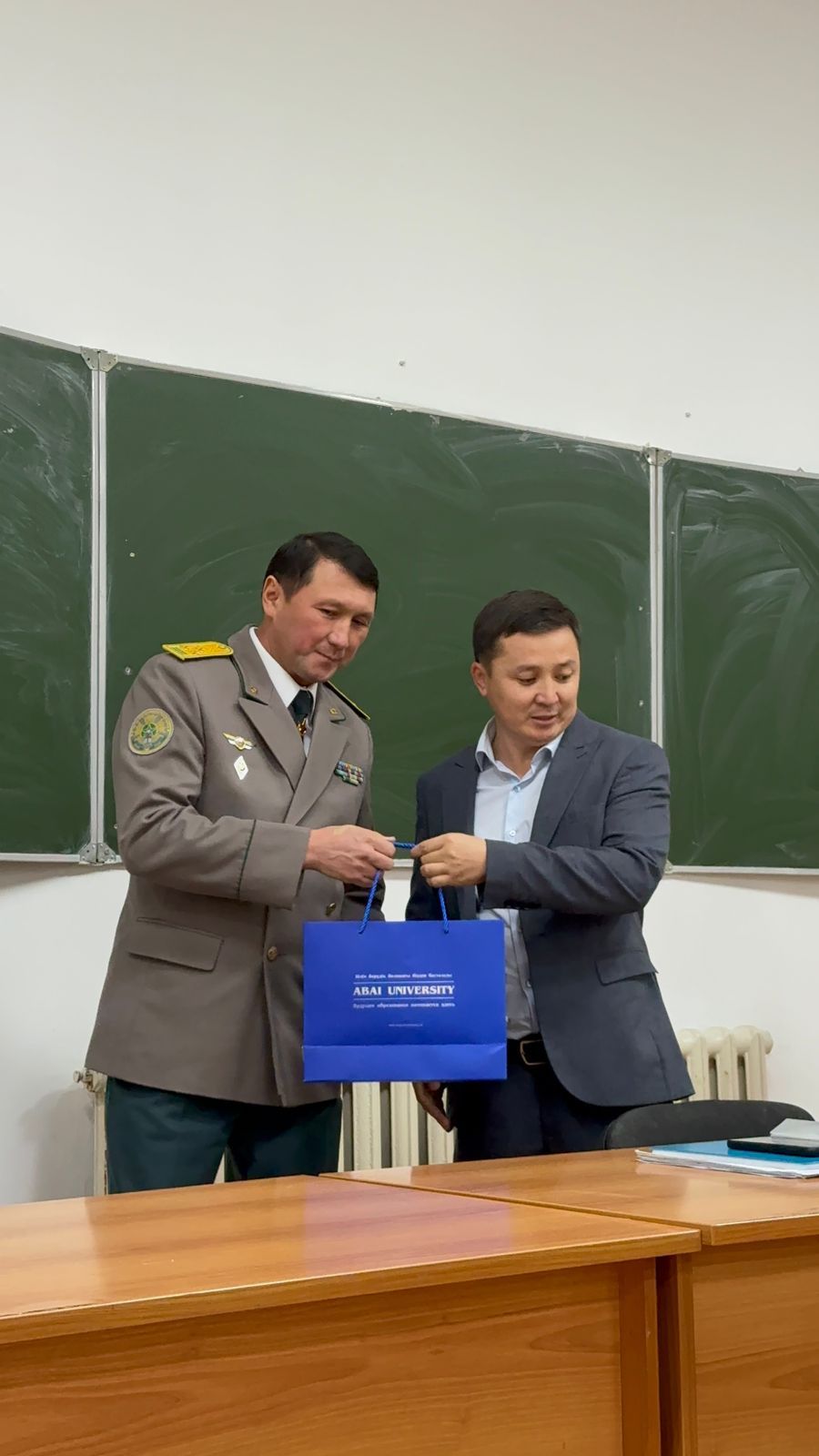 Бастапқы әскери дайындық кафедрасының жылдық жоспарына сәйкес, ҚР Ұлттық қауіпсіздік комитеті Шекара академиясының PhD., қауымдастырылған профессор, полковник Жұмашев Ардақ Базарханұлы және подполковник Бахытбеков Азамат Бахытбекұлы «Қазақстан Республикасының әскери саясаты: негіздері, бағыттары және қауіпсіздік стратегиясы» атты қонақ дәріс оқыды. Бұл дәрісте- Қазақстан Республикасының әскери саясатының мәнін, негізгі бағыттары мен ұлттық қауіпсіздікті қамтамасыз етудегі рөлін таныстырды. Студенттер көкейде жүрген сұрақтарын қойып, тұжырымды жауаптарын алды. Дәріс соңында кафедра меңгерушісі PhD., қауымдастырылған профессор Айдын Бағдатұлы қонақтарға университет атынан алғыс білдіріп, кәде сый табыстады, алдағы уақытта ғылым, білім саласында бірлескен жоспарлар құрылып бекітілді.