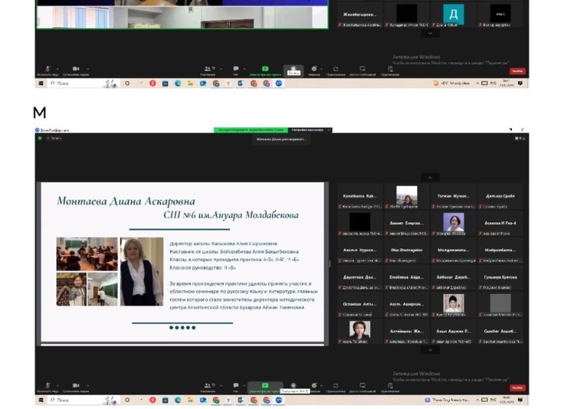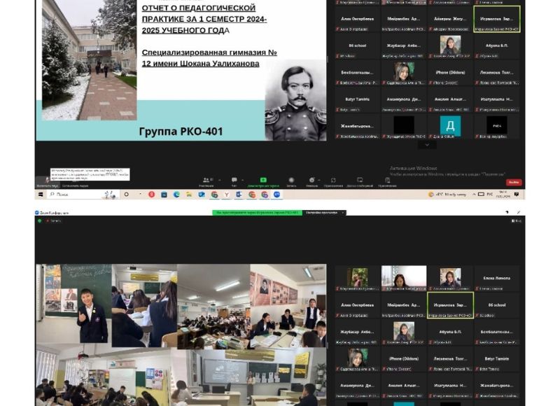 Практиканттар жиын қатысушыларын тәжірибенің аралық нәтижелерімен таныстырды. Студенттер мұғалімдердің күнделікті өмірі, жетістіктері мен мектептегі қиындықтары туралы айтты. Түлектер әдіскерлер мен мектеп тәлімгерлеріне олардың кәсіби дамуына қолдау көрсеткені және көмектескені үшін алғыс айтты.
