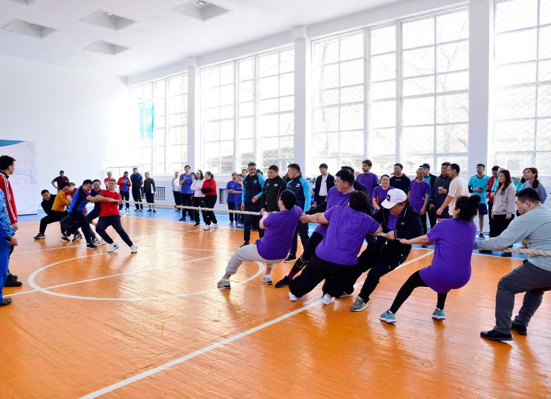Университеттің профессорлық-оқытушы құрамы, сала мамандары мен қызметкерлерінің жұмыс уақытынан тыс кезде салауатты өмір салтын қалыптастыру, дене белсенділігін арттырып, ұжымдық қарым-қатынасты нығайту мақсатында ұйымдастырылған жарыста ойыншылар арқан тарту, шахмат, үстел теннисі және волейбол секілді спорттың төрт түрінен бақ сынады.