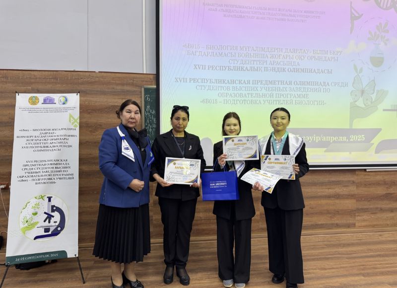 2025 жылғы 24-25 сәуірде «6В015-Биология мұғалімдерін даярлау» білім беру бағдарламалары тобы бойынша Қазақстан Республикасы жоғары оқу орындарының студенттері арасындағы XVII Республикалық студенттік пәндік олимпиада Абай атындағы ҚазҰПУ Жаратылыстану және география факультеті биология кафедрасының ұйымдастырумен өткізілді.