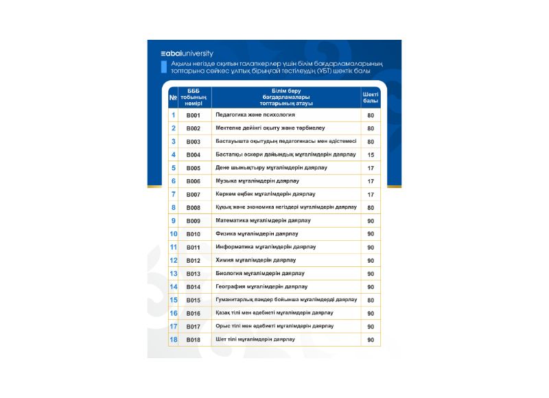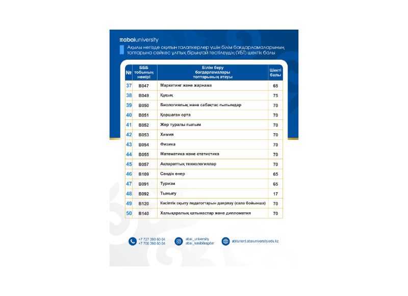 - Қосымша ақпарат алу үшін университеттің ресми сайты: abiturient.abaiuniversity.edu.kz