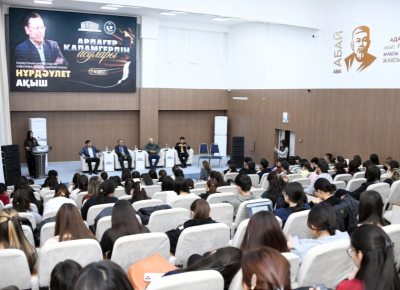 10.11.2025 КӨРНЕКТІ ҚАЛАМГЕРМЕН КЕЗДЕСУ ӨТТІ Абай университетінде қазақ әдебиетінің көрнекті өкілі, ғалым, ұстаз, 1973 жылғы университеттің танымал түлегі Нұрдәулет Ақыштың 75 жылдығына арналған «Ардагер қаламгердің асулары» атты әдеби кеш болып өтті. Кездесуге зиялы қауым өкілдері мен профессорлық-оқытушылар құрамы және студенттер қатысты. Мерейтой қарсаңында қаламгердің өнегелі өмір жолы, шығармашылық мұрасы, ескірмес естеліктері айтылып, мазмұнды туындылары туралы айтылды. Халықаралық «Алаш» әдеби сыйлығының лауреаты, ақын Болат Үсенбай қаламгердің «Кемел адам» идеясының мән-маңызын жастарға түсіндірді. Университеттің талантты студенттері әуезді күй шертіп, жазушы шығармаларынан үзінді оқыды. Сонымен қатар, Нұрдәулет Бәбиханұлына өздерін толғандырып жүрген көкейдегі сауалдарын қойып, кездесу емен-жарқын еркін форматта өрбіді. Нұрдәулет Ақыш – Қазақстанның еңбек сіңірген қайраткері, Қазақстан Жазушылар және Журналистер одағының мүшесі, филология ғылымдарының кандидаты. Ол республикалық «Жігер» жастар фестивалінің, Жамбыл Жабаев атындағы халықаралық сыйлықтың лауреаты және «Құрмет» орденінің иегері. Ол – қазақ прозасында жаңа көркемдік өріс ашқан, адам жанының терең қатпарларын бейнелеуде өзіндік қолтаңбасын қалыптасқан жазушы. Нұрдаулет Бәбиханұлы 1969–1973 жылдар аралығында қазіргі Абай атындағы Қазақ ұлттық педагогикалық университетінің филология факультетінде білім алып, қазақ тілі мен әдебиетінің қыр-сырын меңгерген. Жоғары оқу орнын тәмамдаған соң, әскери борышын өтеуге аттанып, кейін туған өлкесіне оралады. Мұнан кейін аудандық оқу бөлімінде инспекторлық қызмет атқара жүріп, шығармашылыққа бет бұрған. Өмір жолында «Мектеп», «Жалын», «Балауса» баспаларында және «Қазақ әдебиеті», «Қазақстан мұғалімі» сияқты басылымда редактор, журналист болып қызмет атқарған. Жазушының «Жұмбақ іздер» (1977), «Таң алдындағы дабыл» (1985), «Батпақты тоғай басында» (1986), «Киелі көлдің қарақшылары» (1987) шығармалары кезінде жүлделерге ие болған. Оның шығармалары психологиялық тереңдік, философиялық тұспал мен рухани кодты ашуға бағытталған. Оның әңгімелері – ұлттық сана, ар-ождан, заман мен тұлға арасындағы қақтығыстардың философиялық айнасы іспетті.