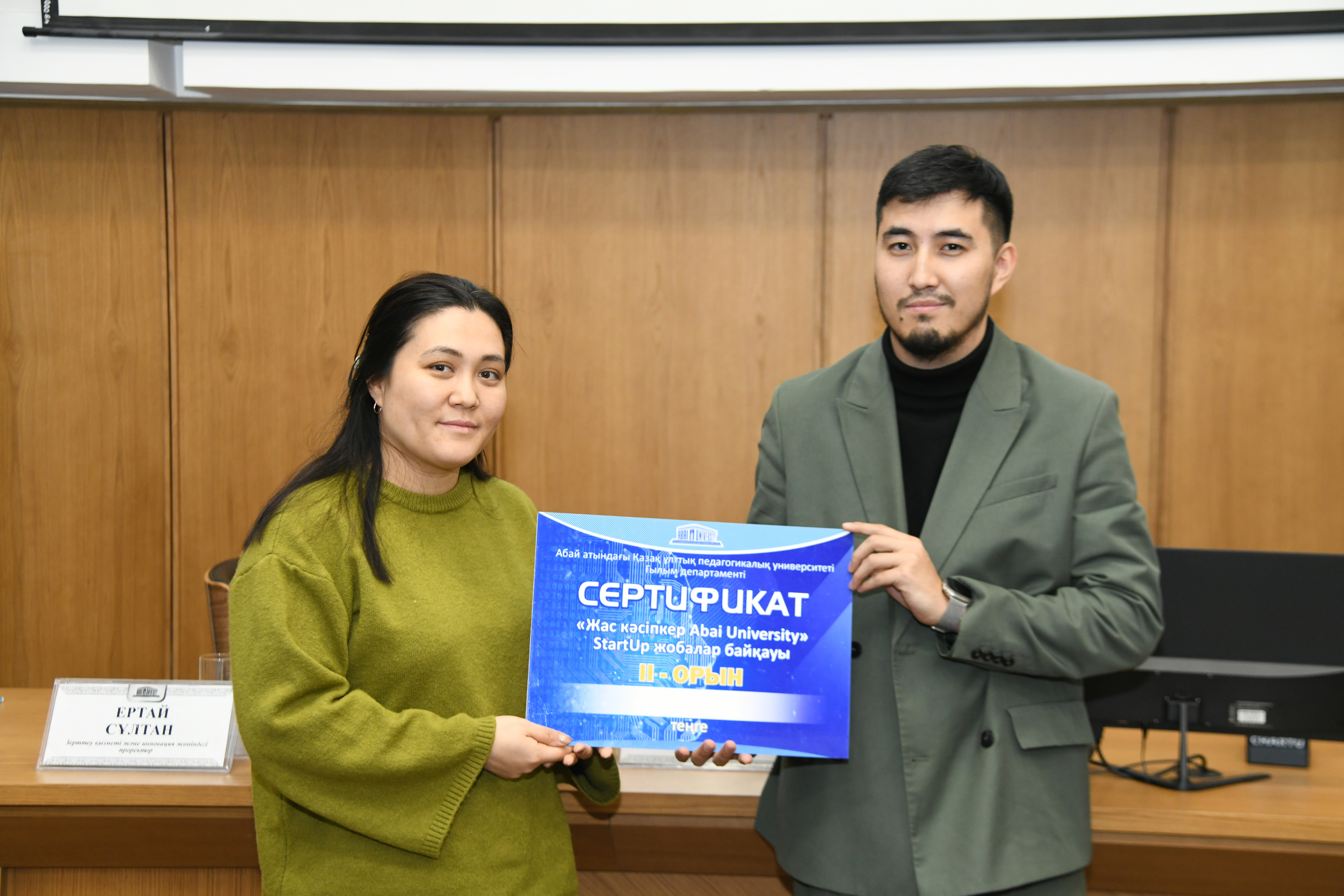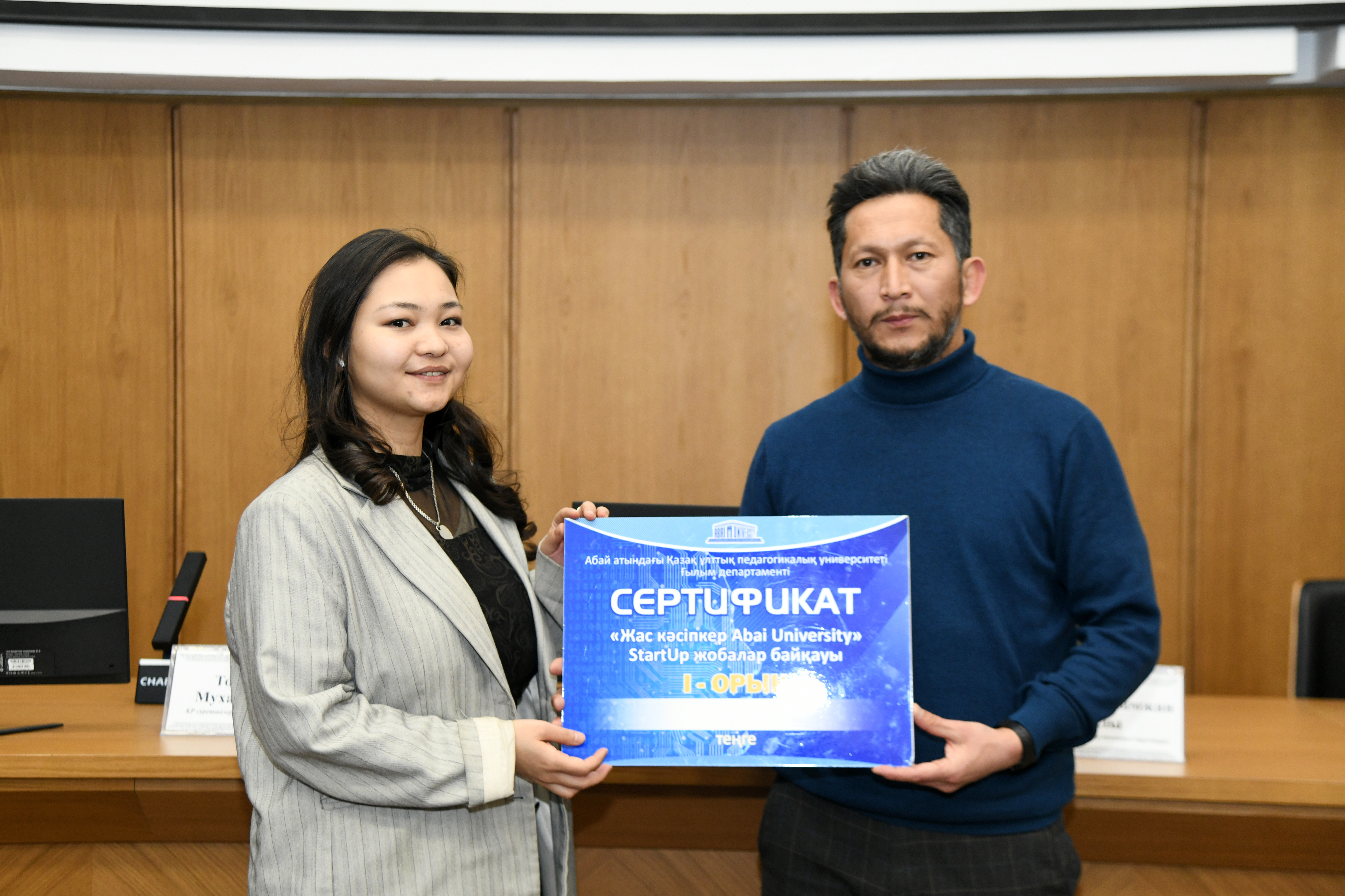 Бүгін Абай университетінде «Жас кәсіпкер Abai University» стартап-жобалар байқауының ақтық кезеңі өтті. Оқу орданың білім алушылары мен оқытушылары кәсіпкерлікке бағытталған жаңа жобалар ұсынып, жүзеге асырылуы жоспарын таныстырды. Университет басшылығы мен кәсіпкерлер қазылық етіп, лайықты ғылыми тың жобаларға қолдау көрсететінін мәлімдеді. Жеңімпаз топқа 2500000 теңгенің сертификаты табыс етілді.