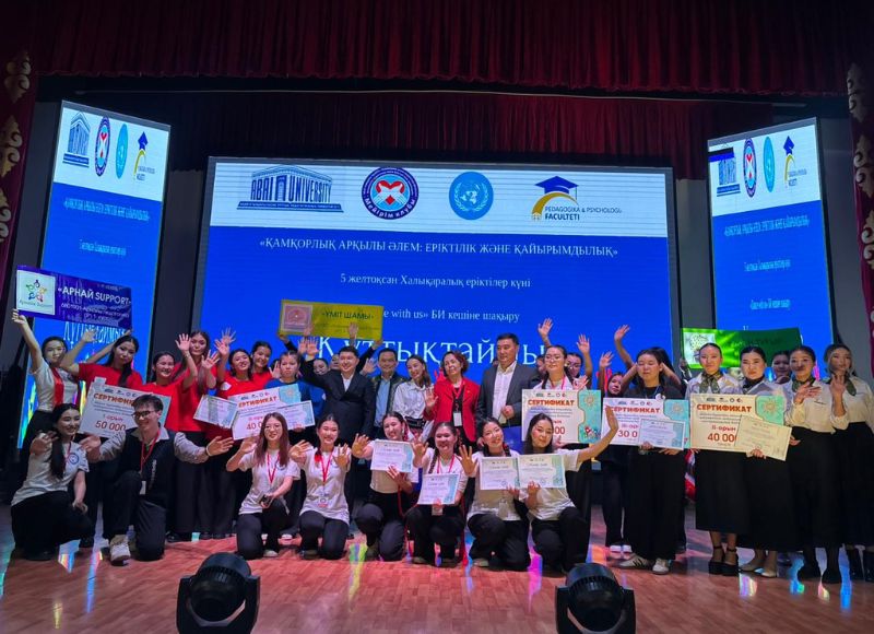 Первое место: - Команда «Арнайы Support» специальность 6В01901-Специальная педагогика (IP), 50.000 тенге. Второе место: - Команда «Үміт шамы» специальность 6В01802 - Социальная педагогика (IP), 40.000 тенге. - Команда «Жан Тұғыры» специальность 6В01109-Психология (ІР), 40.000 тенге. Третье место: - Команда «Ізгі істер әлемі» специальность 6В01204 - Дошкольное образование (IP), 30.000 тенге. - Команда «Шапағат» специальность 6В01308-Начальное образование (IP), 30.000 тенге.