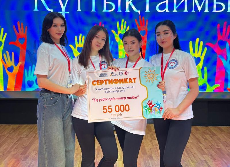 Также в честь Международного Дня волонтера всем активным студентам-волонтерам университета был вручен сертификат на денежное вознаграждение. - «Ең үздік еріктілер тобы» 55.000 тенге. - «Ең үздік қайырымдылық жұмыс» 55.000 тенге.