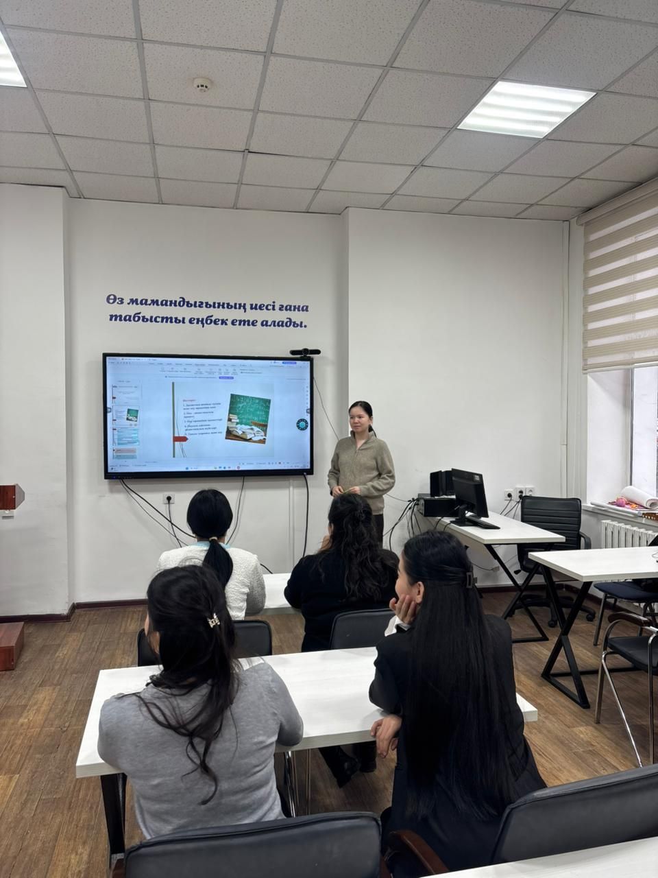 27 января 2026 года на кафедре «Дошкольное образование и социальная педагогика» факультета Педагогики и психологии Казахского национального педагогического университета имени Абая магистрант 2 курса образовательной программы 8D01201 – «Дошкольное обучение и воспитание» Береке Муталипова (научный руководитель, кандидат педагогических наук, доцент Г.З. Таубаева) провела открытое практическое занятие для студентов 1 курса образовательной программы 7М01200 – «Дошкольное обучение и воспитание» по дисциплине «Методика преподавания педагогических дисциплин» на тему «Активные методы обучения в вузе» (преподаватель дисциплины – кандидат педагогических наук, доцент Г.З. Таубаева). Цель занятия заключалась в ознакомлении магистрантов с теоретическими основами и практическими возможностями активных методов обучения, применяемых в высшей школе, а также в развитии их профессионально-педагогической компетентности. В ходе занятия докторантка Б. Муталипова способствовала повышению познавательной активности магистрантов, применяя интерактивные методы (дискуссия, «Мозговой штурм», «Аквариум»), а также предоставила возможность решения ситуационных задач с использованием метода case-study. Работа в группах с магистрантами данной образовательной программы была направлена на формирование их исследовательских и творческих способностей.