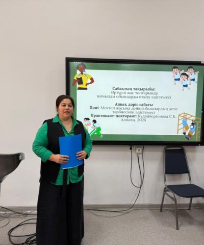 4 февраля 2026 года в рамках педагогической практики кафедра «Дошкольное образование и социальная педагогика» факультета педагогики и психологии Казахского национального педагогического университета имени Абая провела открытое лекционное занятие для студентов 3 курса образовательной программы 6B01201 – Дошкольное обучение и воспитание. Открытая лекция на тему «Методика проведения подвижных игр для различных возрастных групп» по дисциплине «Методика физического воспитания детей дошкольного возраста» была проведена докторантом 2 курса образовательной программы 8D01201 – Дошкольное обучение и воспитание Кудайбергеновой Сулушаш Каскырбаевной (научный руководитель — кандидат педагогических наук, ассоциированный профессор Н.О. Атемкулова). Преподаватель дисциплины — магистр, старший преподаватель А.А.Ауезова. Основной целью лекции являлось формирование у студентов теоретических знаний о методике организации и проведения подвижных игр с учетом возрастных особенностей детей дошкольного возраста. В ходе занятия докторант С. Кудайбергенова широко использовала интерактивные методы обучения и различные игровые технологии. Примененные методы способствовали развитию критического мышления студентов, а также умению четко и аргументированно выражать собственное мнение. В лекции приняли участие 60 студентов. Представленный материал отличался логичностью, систематичностью, доступностью и высокой познавательной ценностью. Студенты проявили высокую активность и заинтересованность, старались давать полные и точные ответы на поставленные вопросы, что свидетельствовало об успешном усвоении нового материала. Сулушаш Кудайбергенова сумела установить эффективное взаимодействие с аудиторией. По итогам открытого лекционного занятия студенты достигли следующих результатов: научились различать виды подвижных игр в соответствии с возрастными особенностями дошкольников, усвоили основные методические требования к их организации и овладели педагогическими основами подбора подвижных игр для каждой возрастной группы. Кроме того, были определены пути эффективного применения подвижных игр в будущей профессиональной деятельности. В завершение занятия была проведена обратная связь, в ходе которой студенты поделились своими впечатлениями и предложениями. Поставленные цели занятия были полностью достигнуты. Студенты успешно освоили тему и получили теоретические знания, которые могут быть применены в профессиональной деятельности. Открытое лекционное занятие прошло на высоком методическом уровне и было результативным. В открытом занятии приняли участие следующие преподаватели кафедры: заведующая кафедрой, кандидат педагогических наук, ассоциированный профессор Кыякбаева Улбосын Козыбаевна; доктор педагогических наук, профессор Шалгынбаева Кадиша Кадыровна; кандидат педагогических наук, ассоциированный профессор Атемкулова Назира Омаровна; доктор PhD, исполняющая обязанности ассоциированного профессора Абилбакиева Галия Турысбековна; магистр, старший преподаватель Ауезова Айжан Абилдаевна; магистр, старший преподаватель Асанханова Жанна Жеткербайкызы; докторант Омарбекова Фарида. Участники обсудили занятие и поделились своими профессиональными мнениями.