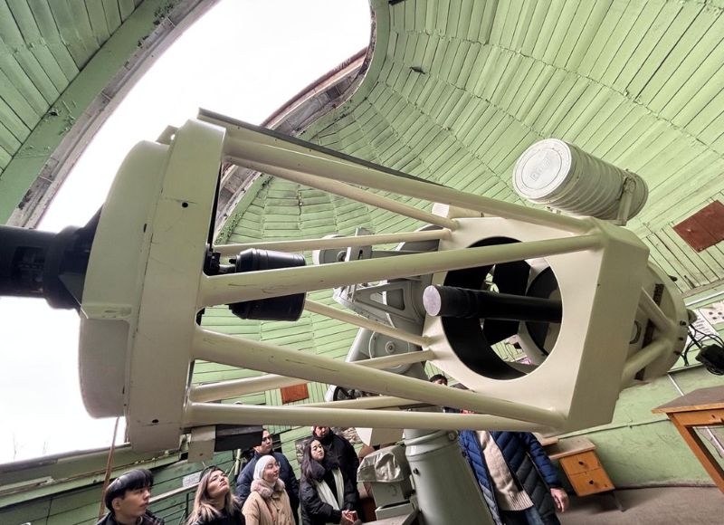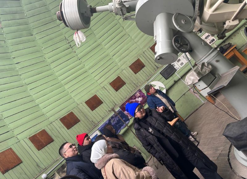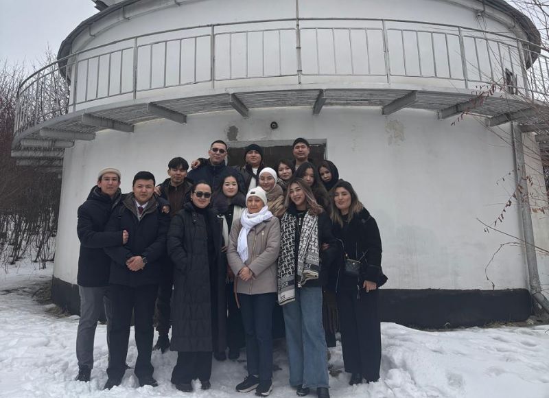 Студенты ОП 6В05302-Физика на производственной практике В рамках производственной практики студенты образовательной программы 6В05302-Физика направлены в следующие базы практик: 1) Институт Ядерной физики; 2) Астрофизический институт им В.Г.Фесенкова; 3) Национальный центр экспертизы и сертификации; 4) Институт механики и машиноведение им. О Жолдасбекова. 15 января 2026 г состоялось знакомство с Астрофизическим институтом имени В. Г. Фесенкова (АФИФ), который является ведущим научным центром в области астрономии и астрофизики в Казахстане. Во время визита студенты познакомились с историей института, основными направлениями его научной деятельности, а также с современной наблюдательной и исследовательской инфраструктурой. Особое внимание было уделено практическим аспектам работы астронома: организации наблюдений, использованию телескопов и регистрирующей аппаратуры, а также обработке и интерпретации астрономических данных. Сотрудники института рассказали о текущих научных проектах, в том числе исследованиях Солнца, звёзд, межзвёздной среды и объектов далёкой Вселенной. Производственная практика играет важную роль в подготовке будущих специалистов, позволяя связать теоретические знания с реальной научной работой и сформировать представление о современной исследовательской среде.