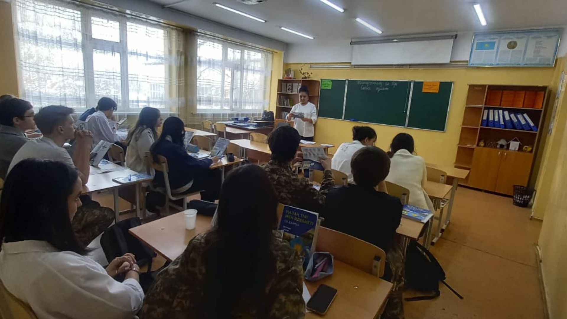 Профориентационная встреча в КГУ «Общеобразовательной школе № 89» 12 декабря 2025 года профориентатор кафедры общей и прикладной психологии Тусубекова Кунслу Кадыркуловна совместно с заместителем директора по воспитательной работе Байзаковой Марал Кайырлыевной КГУ «ОШ № 89» провели профориентационную встречу с учащимися 10-11-х классов.