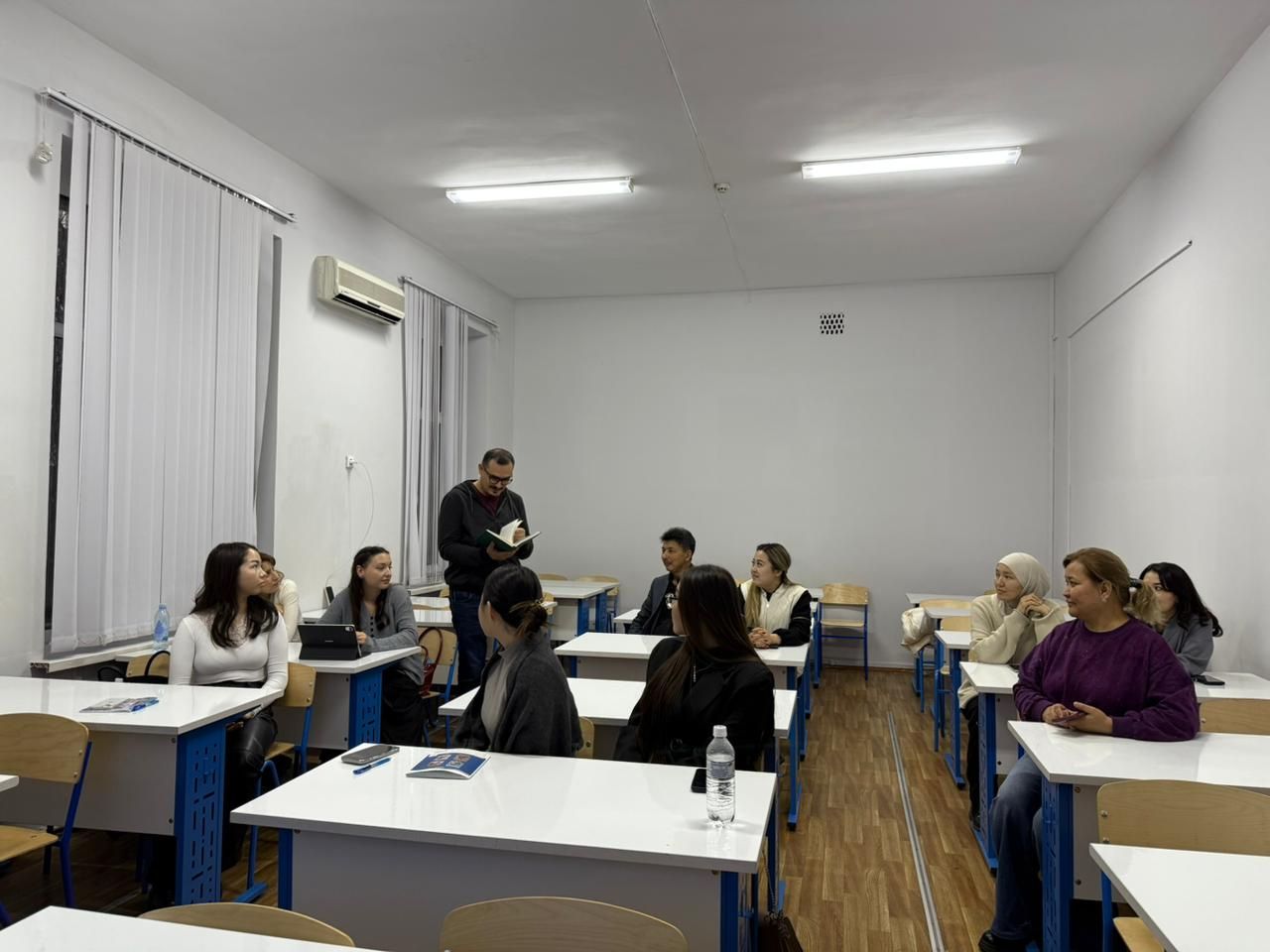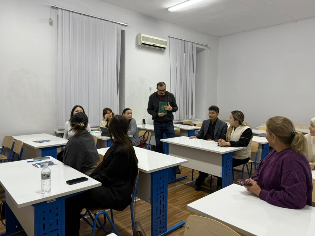 05.12.2025 г. – в рамках планового мероприятия, утверждённого на заседании кафедры восточной филологии и перевода факультета мировых языков на 2025–2026 учебный год, и.о. ассоциированного профессора, к.ф.н. Е. З. Есбосынов провёл открытый урок по дисциплине «Основы художественного перевода» для студентов 4 курса специальности «Переводческое дело» (6В02302). Е. З. Есбосынов выступил с докладом на тему «О переведённом романе-детективе Кемеля Токаева на турецкий язык», рассмотрев турецкую версию повести Кемеля Токаева «Эхо в горах». Он затронул аспекты соответствия и различий фразеологических оборотов и идиом в казахском и турецком языках, а также их отражение в дословном и эквивалентном переводах, включая звукоподражательные единицы. В открытом уроке принял участие PhD доктор Осман Кабадайы, находящийся в научной командировке в Алматы, и высказал своё мнение о первом казахском детективе, изданном Международной организацией ТЮРКСОЙ в Анкаре в 2023 году. Он отметил, что сборник писателя был качественно переведён, вызвал большой интерес у турецких читателей и в настоящее время находится в свободной продаже в Турции. В мероприятии также приняли участие старший преподаватель специальности «Переводческое дело» У. Акбердыкызы, которая выступила по теме переводческой деятельности и состояния переводческой науки в нашей стране, сделав обзор университетских и республиканских научных проектов в области перевода. Участниками были и старший преподаватель турецкого языка Н. Коспаганбетова, специалист по арабскому языку, к.ф.н. Э. Канcейитова, ведущий специалист отдела мониторинга и контроля учебных занятий, магистр Н. Ж. Ельчибаева, а также магистр М. Тастемир, которые высказали свои мнения по тематическим направлениям выступлений студентов. Презентации-слайды были заслушаны с большим интересом, что в очередной раз продемонстрировало высокий уровень квалификации преподавательского состава и студентов специальности «Переводческое дело».