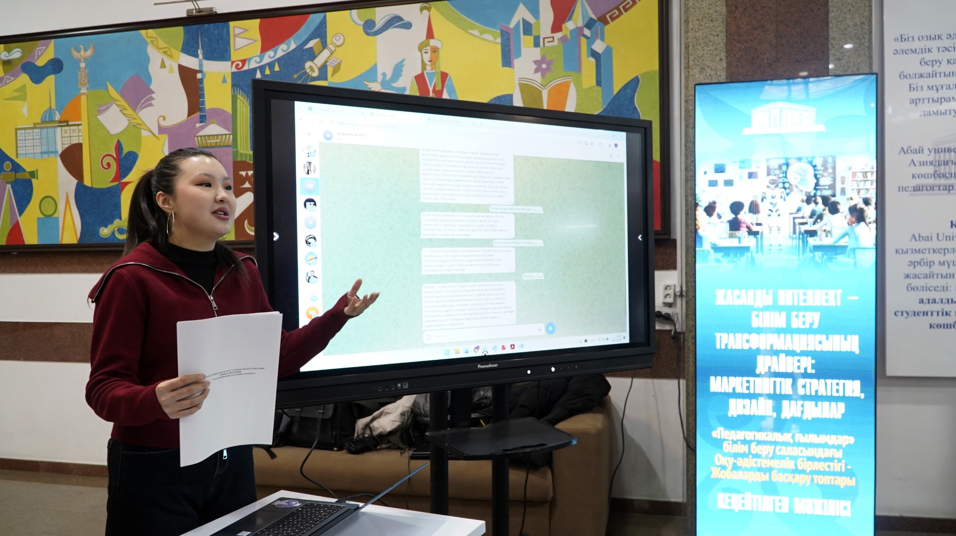 Проректор по академической работе КазНПУ имени Абая Бану Нарбекова представила доклад о новых подходах к подготовке кадров в сфере искусственного интеллекта. Были обсуждены вопросы цифровой грамотности и уровня освоения технологий среди студентов Казахстана, а также навыков, которые педагоги должны освоить.