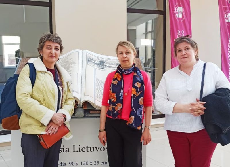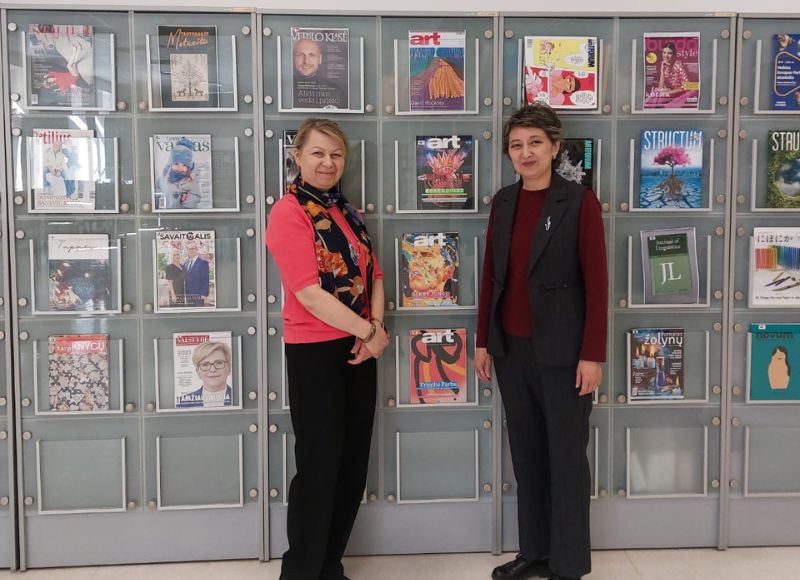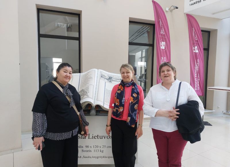The meeting with the leadership of the Siauliai Academy of Vilnius University was marked by a round table meeting, where the topic of the scientific project was announced for the pedagogical, scientific and creative exchange of experience with the staff of the University of Siauliai Academy of Vilnius University, the exchange of experience in participating in scientific projects and in international Erasmus programs, the adaptation of students and undergraduates to preserve the mentality of national culture and cultural memory through art. Laura Kakimova and Svetlana Balagazova shared their experience with the pedagogical community of scientists at the Siauliai Academy of Vilnius University in implementing a two-degree program in the Master`s degree program. She visited scientific libraries, campuses, classrooms of the Siauliai Academy of Vilnius University.