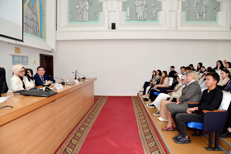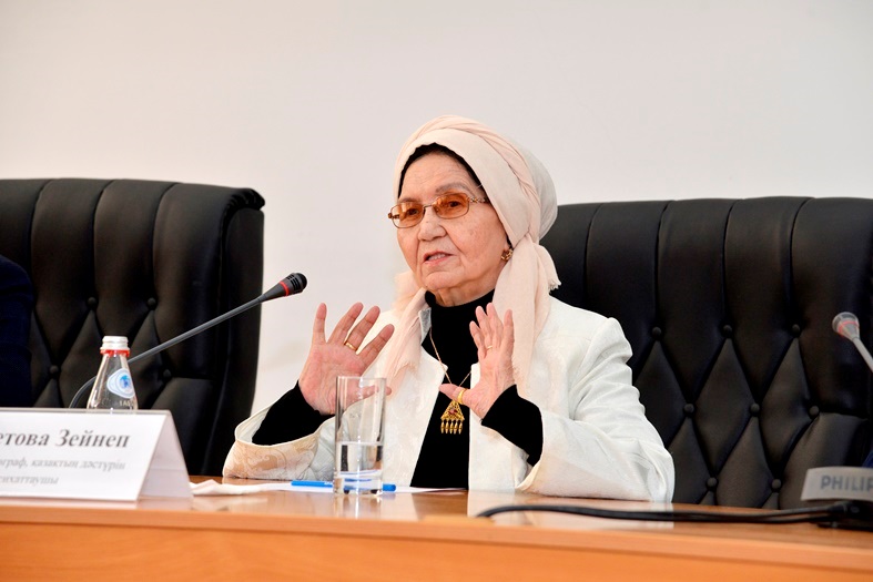 В рамках Недели «Национальное образование - будущее нации», организованной центром «Ұлттық тәрбие», состоялась встреча с писателем, этнографом, пропагандистом казахских традиций Зейнеп Ахметовой. Помимо студентов и сотрудников вуза в мероприятии приняли участие гости из КазНУ им. аль-Фараби.