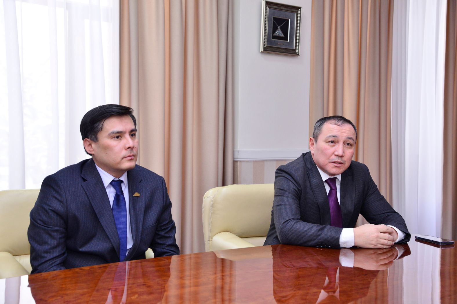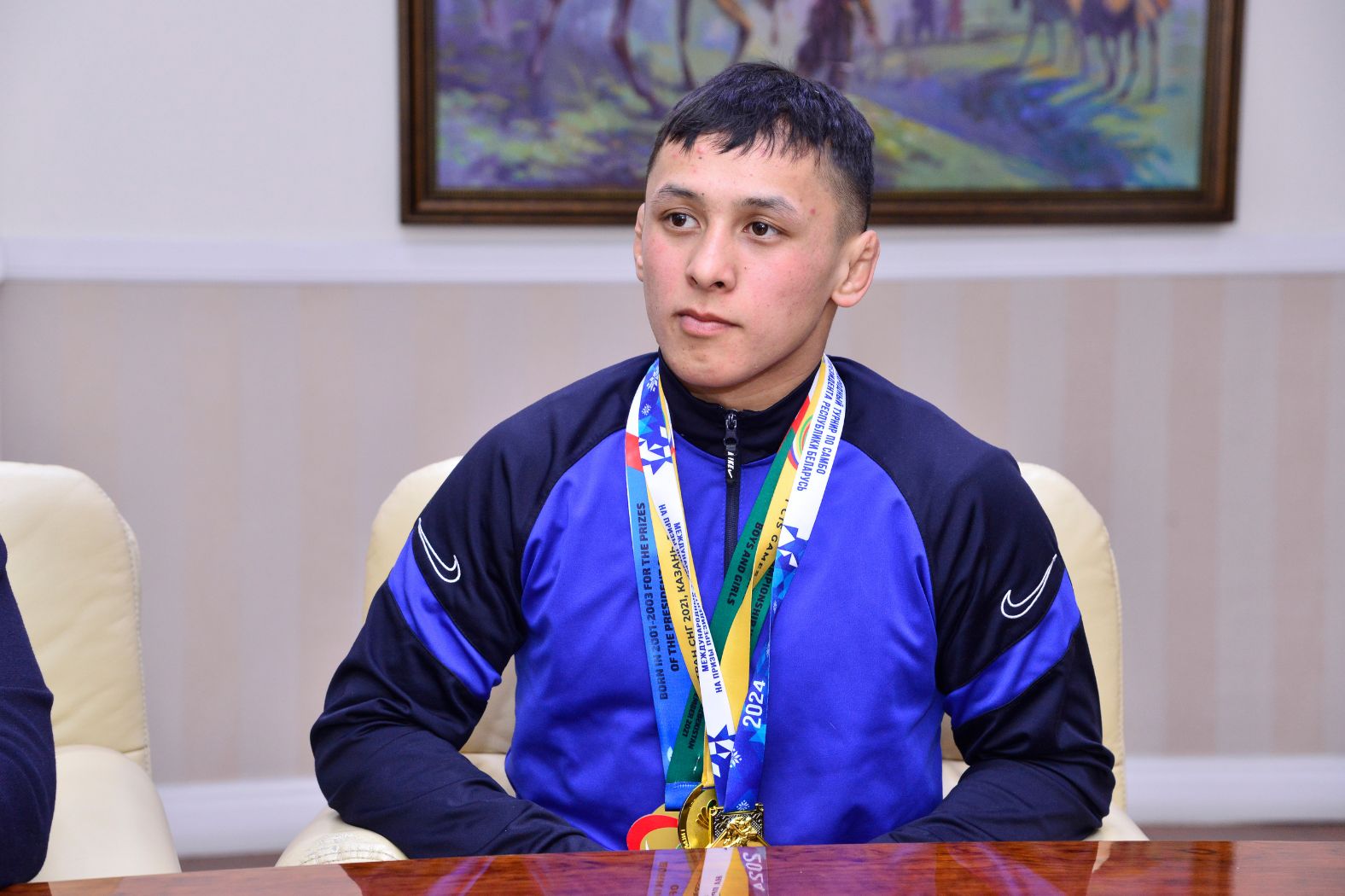 Today, 20 February 2024, Chairman of the Board-Rector of Abai KazNPU Bolat Tlep met with the champion of the international sambo tournament Nursyitov Nursultan and his coach Erkin Saidakov.