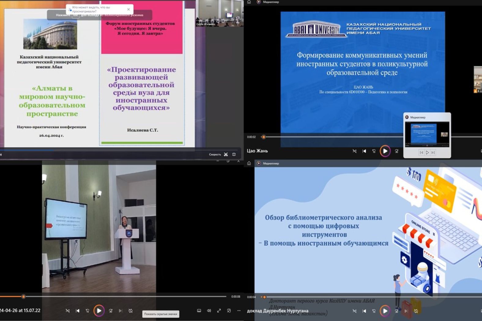 At the scientific and practical conference "Almaty in the global scientific and educational space", Senior Lecturer and doctoral students of the Department of Pedagogy and Psychology Saule Issaliyeva, Cao Ran (China, video report) and Daurenbek Nurtugan (Mongolia, video report), doctoral student of the Russian Language Department Li Duo (China) made presentations.
