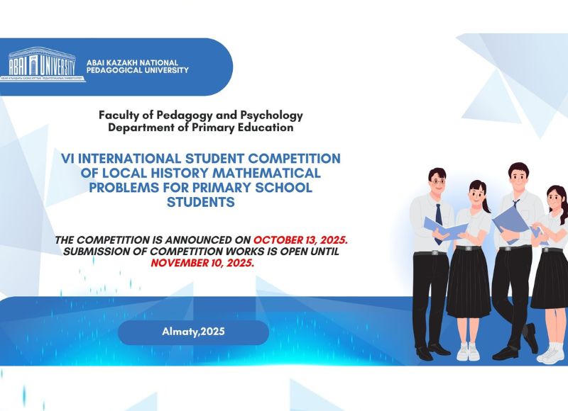 1. Lebedeva L. A. – Candidate of Pedagogical Sciences, Professor of the Department of Primary Education; 2. Akpayeva A. B. – Candidate of Pedagogical Sciences, Professor of the Department of Primary Education; 3. Artamonova V. I. – 1st-year Master’s student of the “Primary Education Pedagogy and Methods” program, Abai KazNPU; 4. Kambarova A. S. – 1st-year Master’s student of the “Primary Education Pedagogy and Methods” program, Abai KazNPU; 5. Baizakova T. T. – 1st-year Master’s student of the “Primary Education Pedagogy and Methods” program, Abai KazNPU |