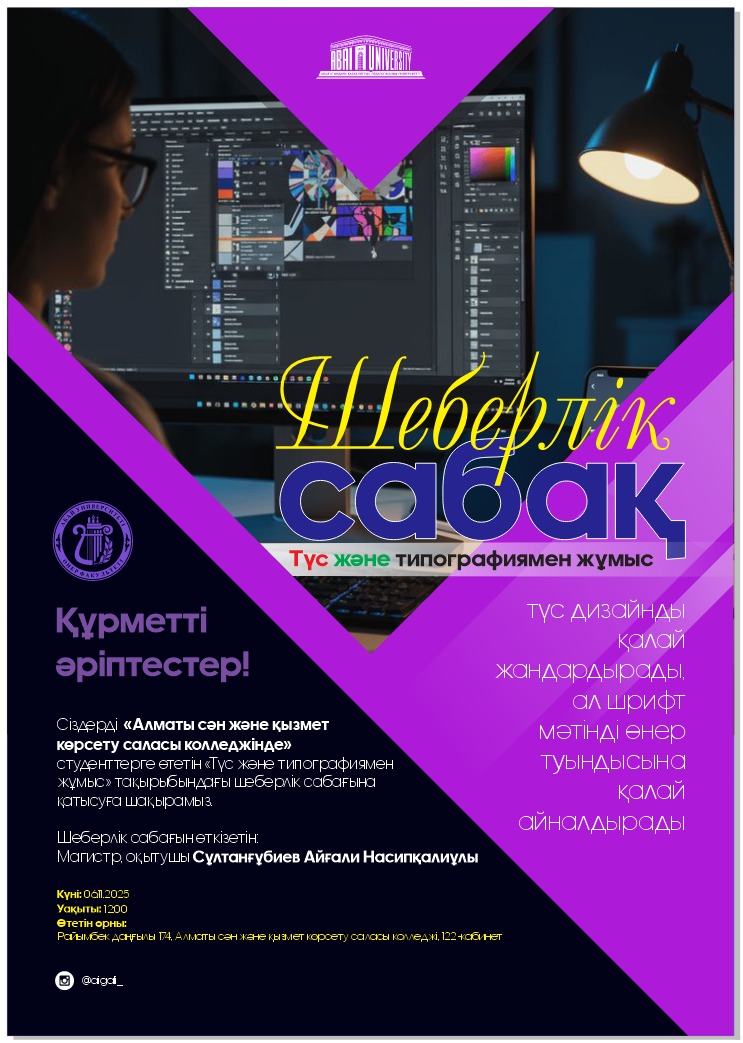 Шеберлік сабақ, қатысушыларға заманауи графикалық дизайнның ерекшеліктерін тәжірибе жүзінде меңгеруге мүмкіндік берді және олардың шығармашылық көзқарасын кеңейтті.