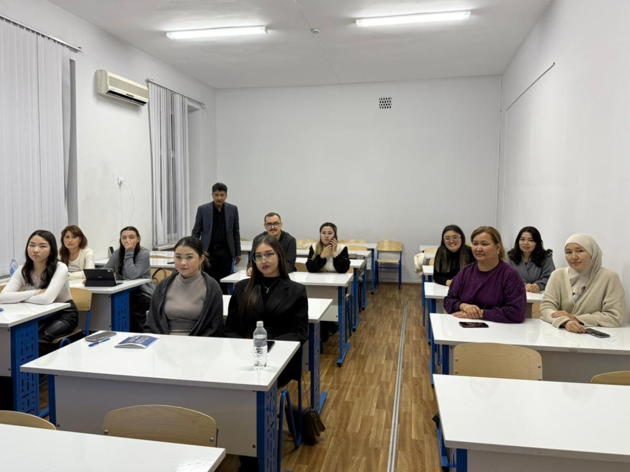 05.12.2025. Әлем тілдері факультеті Шығыс филологиясы және аударма кафедрасы мәжілісінің 2025-2026 оқу жылына бекіткен жоспарлы іс-шарасы аясында кафедраның қауымдастырылған профессор м.а., ф.ғ.к. Е.З.Есбосынов «Аударма ісі» (6B02302) мамандығы 4 курс студенттерімен «Көркем аударма негіздері» пәнінен ашық сабақ өткізді. Аға оқытушы Е.З.Есбосынов «Кемел Тоқаевтің түрік тіліне аударылған детектив еңбектері туралы» деп аталған шағын лекциясында Кемел Тоқаевтің «Таудағы жаңғырық» повестінің түрік тіліне аударылған нұқсқасына шолу жасады. Лекциясында екі тілдегі детектив жанрында орындалған романдарды атап өтіп, аударма барысында кездескен жекелеген проблематикалық тұстарға тоқталды. Атап айтқанда қазақ-түрік тіліндегі одағай мен еліктеуіш сөздердің өзара сәйкестігі мен айырмашылықтары сөз болды. Аударма барысында қолданылған «балама аударма» мен «эквивалентті, сөзбе –сөз» аудармалардың түркі тілдеріндегі көріністеріне тоқталды. Ашық сабаққа Алматы қаласында ғылыми іс-сапармен жүрген PhD доктор Осман Қабадайы қатысып 1923 ж. Анкара қаласындағы Халықаралық ТҮРКСОЙ ұйымы жариялаған алғашқы қазақ детективі туралы өз пікірін білдірді. Детективтер жинағының түрік тіліне сапалы аударылғанын атап өтіп, түрік оқырмандарының қызығушылығына ие болғандығын, қазіргі уақытта Түркияда ашық сатылымда екендігін атап өтті. Ашық сабаққа «Аударма ісі» мамандығының аға оқытушысы Ұ.Ақбердіқызы қатысып аударма мамандығының пәндік ерекшелігі мен аударма ғылымының еліміздегі жай-күйіне тоқталып өтті. Аударма саласындағы университтік және республикалық ғылыми жобалар аясында орындаған және орындалып жатқан әс-шараларға шолу жасады. Сондай-ақ түрік тілі аға оқытушысы Н.Қоспағанбетова, арап тілі маманы ф.ғ.к. Э.Қансейітова, Оқу сабақтарын мониторингілеу және бақылау бөлімінің жетекші маманшы магистр Ельчибавева Н.Ж. және магистр М.Тастемір қатысып студенттер дайындаған тематикалық СӨЖ-ге орай өз ойлары мен пікірлерін білдірді. Баяндама – слайттар қызықты болып, Аударма бөлімі ПОҚ пен студенттерінің біліктілік деңгейінің жоғары екендігін көрсетті.
