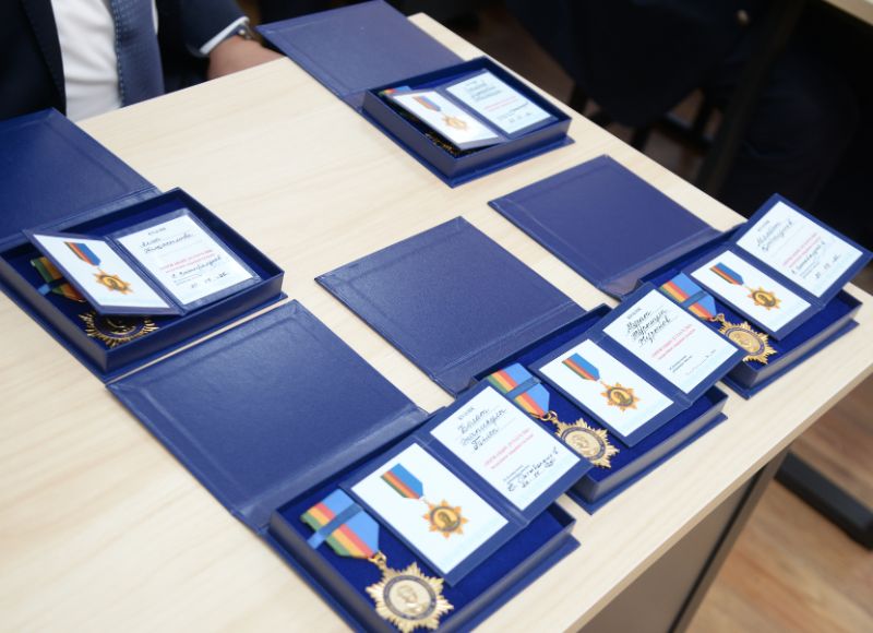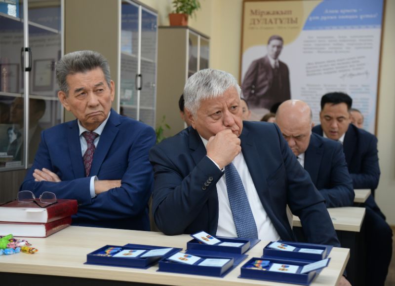 Жиынның құрметті қонағы – Міржақып Дулатұлының жиені, аудиторияның жасақталуына демеушілік жасаған «Мектеп» баспасының бас директоры Ерлан Сатыбалдиев университет ұжымына ағартушы есімін ұлықтауға бағытталған бұл бастама үшін алғысын білдіріп, біртуар тұлға ұрпақтары атынан ЖОО басшылығына және салтанатты жиынға қатысқан мәртебелі қонақтарға «Міржақып Дулатұлы» медалін табыс етті.