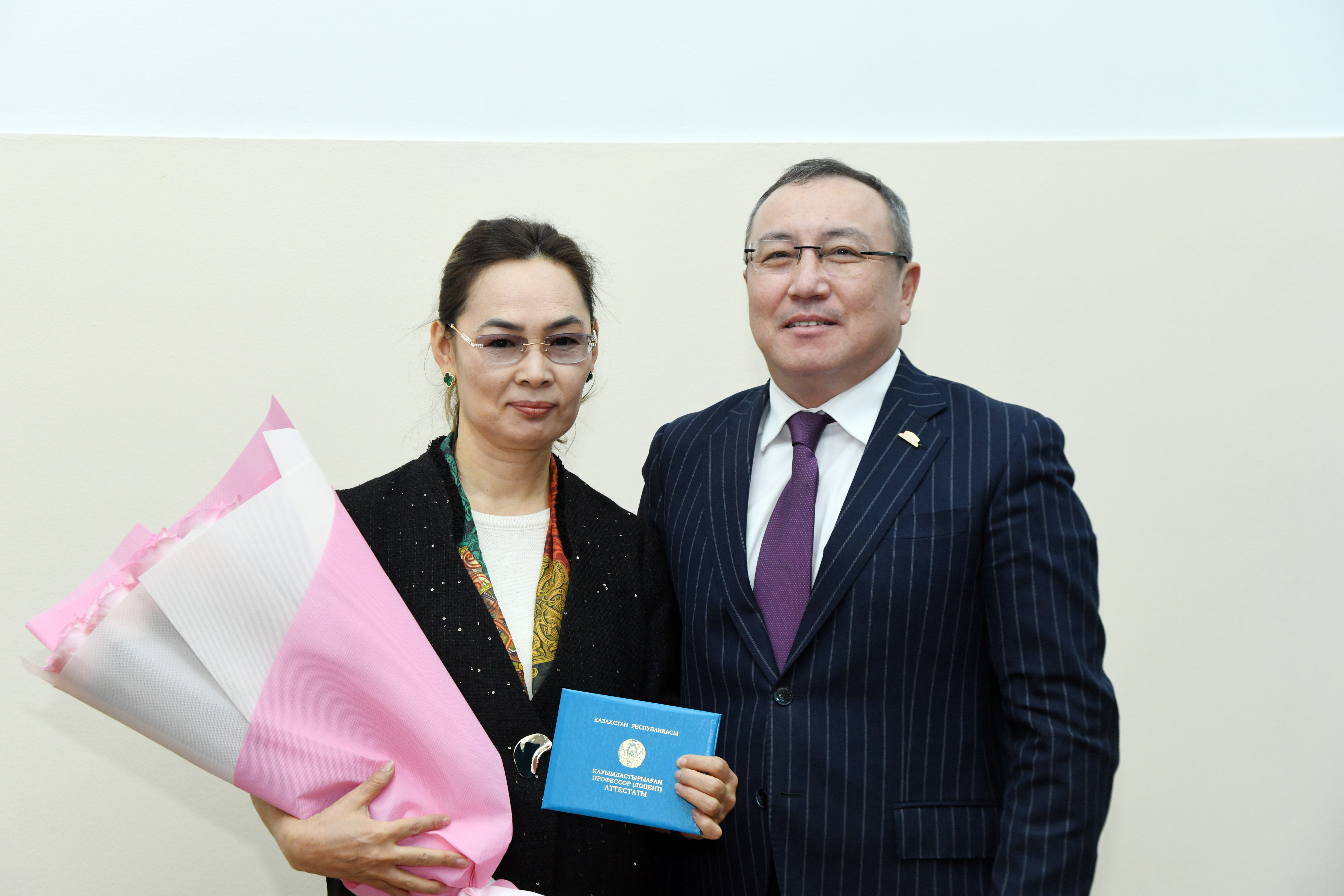 Бүгін Абай университетінде кезекті Ғылыми кеңес отырысы өтті. Бұл – инновациялық білім беру, цифрландыру және стратегия, ғылыми бағытта жұмыс жоспарын бекітетін маңызды мәжіліс. Онда Қазақстан педагогика ғылымдар академиясының академигі, қауымдастырылған профессор және PhD ғалымдарына дипломдар табысталды. Күнтізбелік жылдың соңғы Ғылыми кеңесі дәстүрлі түрде жағымды жаңалықтармен басталды. Абай атындағы ҚазҰПУ аппарат басшысы Жанатбек Ішпекбаев, Ғылыми зерттеу және инновация жөніндегі проректор Ертай Сұлтанға «Қазақстан Педагогикалық ғылымдар академиясының академигі» атақтары берілді. Куәліктерді Ғылыми кеңес отырысына арнайы қатысқан академия президенті Асқарбек Құсайынов ресми түрде тапсырды. Содан кейін Ғылым және жоғары білім министрлігінің №2091 бұйрығымен «10200 – Физикалық ғылымдар» бағыты бойынша Абай университетінің ғылыми кадрларды даярлау басқармасының басшысы Гүлзада Баимбетоваға қауымдастырылған профессор куәлігі табыс етілді. Сондай-ақ, Абай университетінде оқыған және еліміздің әртүрлі жоғары оқу орындарынан келіп, Абай университетінің диссертациялык кеңесінде ғылыми жұмыстарын сәтті қорғаған 10 докторант университет Басқарма төрағасы-ректоры Болат Тілептің қолынан философия докторы (PhD) дипломдарын алды. PhD дипломын Абай атындағы Қазақ ұлттық университетінен Гүлнұр Ғазизқызы, Қарлығаш Қобландина, Ләйла Алпысбай, Жадыра Орынбаева, Нұрбану Сапанова, Раузия Исмағұлова, Ш.Уалиханов атындағы Көкшетау университетінен Сәуле Ермағанбетова, Ө.Жәнібеков атындағы ОҚПУ-дан Абай Қаратаев, Қ.Жұбанов атындағы Ақтөбе өңірлік мемлекеттік университетінен Әсемгүл Әлсейітова және Қорқыт Ата атындағы Қызылорда университетінен Ботагөз Жәрменова иеленді. Жалпы, биылғы жылы диссертациялық кеңесте 78 докторант ғылыми зерттеу жобасын сәтті қорғап, PhD дәрежесіне қол жеткізген.