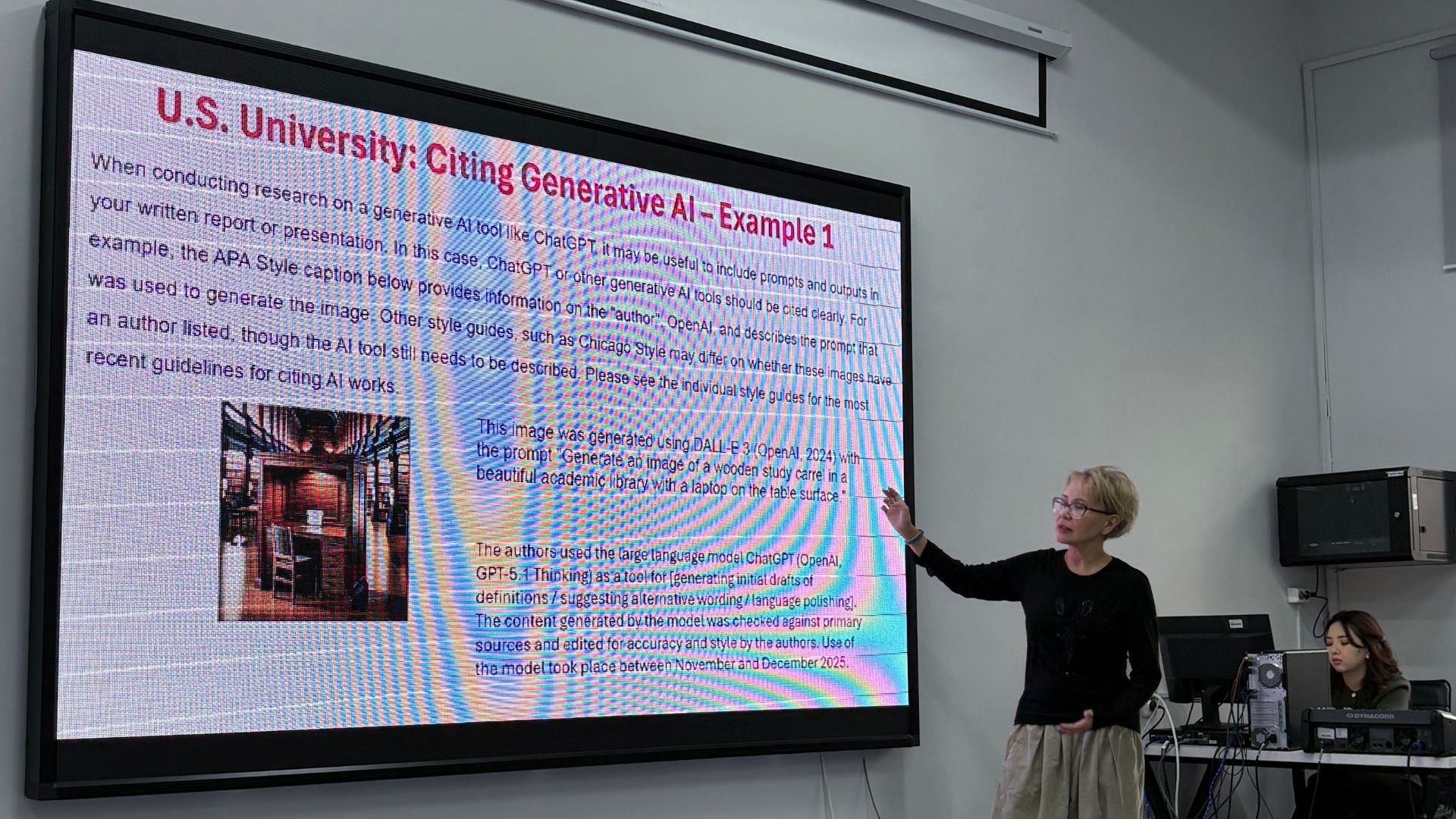КЕНТУККИ УНИВЕРСИТЕТІНІҢ (АҚШ) ПРОФЕССОРЫ БАХЫТ ӘЛІПОВА ГЕНЕРАЦИЯЛЫҚ ЖИ ЖӨНІНДЕ WORKSHOP ӨТКІЗДІ/span> «Бастауыш білім беру» кафедрасында зерттеу және білім беру салаларында генерациялық жасанды интеллект технологияларын тиімді қолдануға арналған ғылыми-практикалық Workshop өтті. Іс-шараны Кентукки университетінің (АҚШ) профессоры, PhD Бахыт Әліпова жүргізді. Workshop барысында профессор Әліпова ЖИ-мен жұмыс істеудің қазіргі әдістерін таныстырып, өнімді prompts құрудың қыр-сырын, сондай-ақ интеллектуалдық жүйелерді зерттеу ұсыныстары мен ғылыми мәтіндер әзірлеу үдерісінде қолдану мүмкіндіктерін көрсетті. Сонымен бірге этикалық талаптарды сақтаудың маңызы, ЖИ арқылы алынған материалдарды дұрыс рәсімдеу және аналитикалық жобаларға арналған құрылымдық frameworks қалыптастыру мәселелері жан-жақты қарастырылды. Workshop интерактивті форматта өтті. Қатысушылар практикалық тапсырмалар орындап, өздерінің prompts үлгілерін әзірлеп, оларды нақты уақыт режимінде тексеріп, генерация нәтижелерін жетілдіру тәсілдерін талқылады. Оқытушылар мен білім алушылар ұсынылған ақпараттың жоғары практикалық маңызын атап өтіп, оның білім берудің цифрлық трансформациясына сәйкес келетінін айтты. Workshop қатысушылардың генерациялық жасанды интеллект бойынша кәсіби білімдері мен дағдыларын кеңейткен маңызды шара болды және заманауи технологияларды білім беру үдерісіне енгізудің өзектілігін айқын көрсетті.