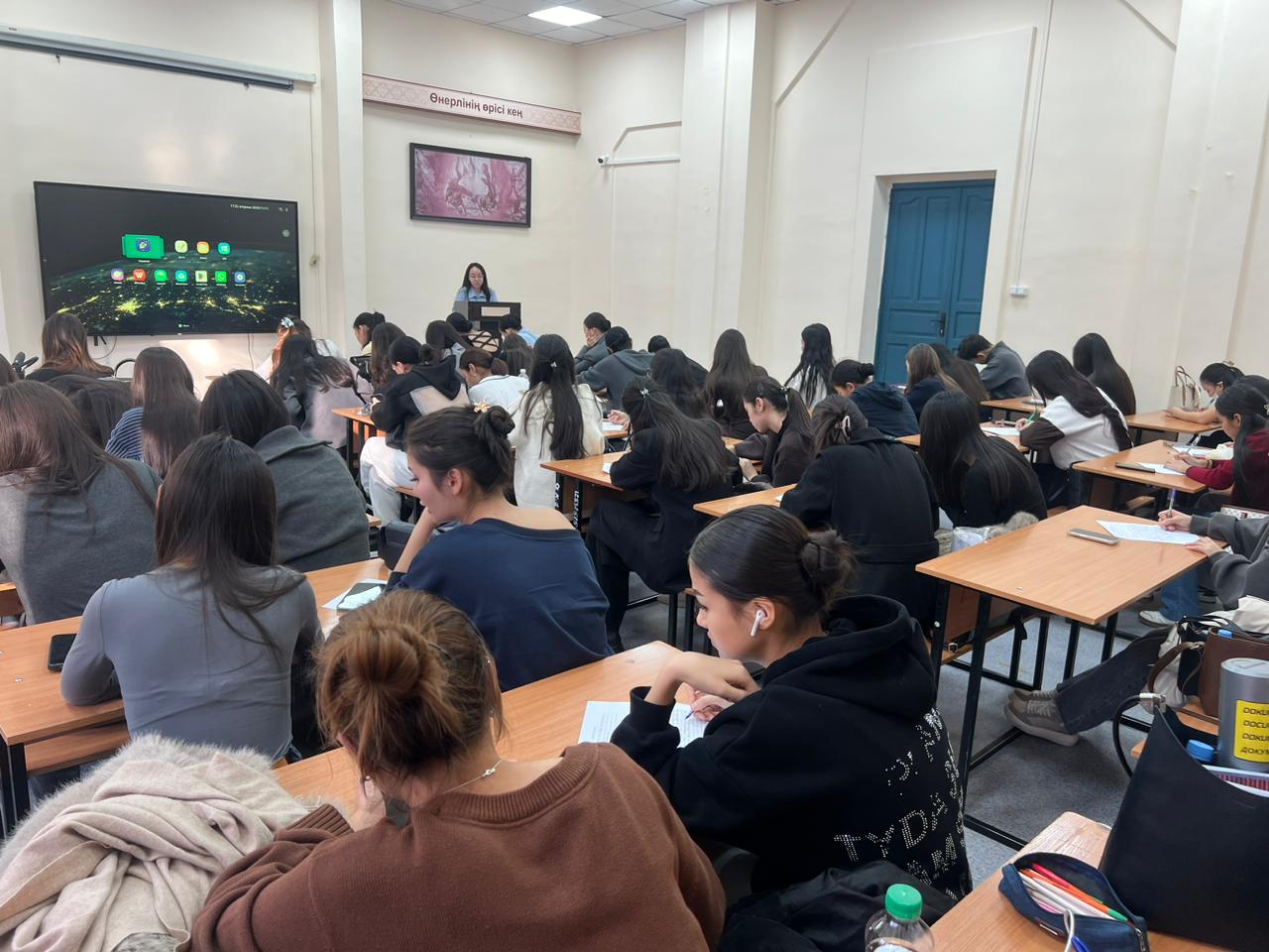 Сегодня в стране состоялся республиканский культурно-просветительский проект «Национальный диктант», направленный на повышение статуса государственного языка и развитие грамотности населения. Участникам были розданы специальные бланки, а текст диктанта был прочитан в трёх последовательностях - для подготовки, письма и проверки.
