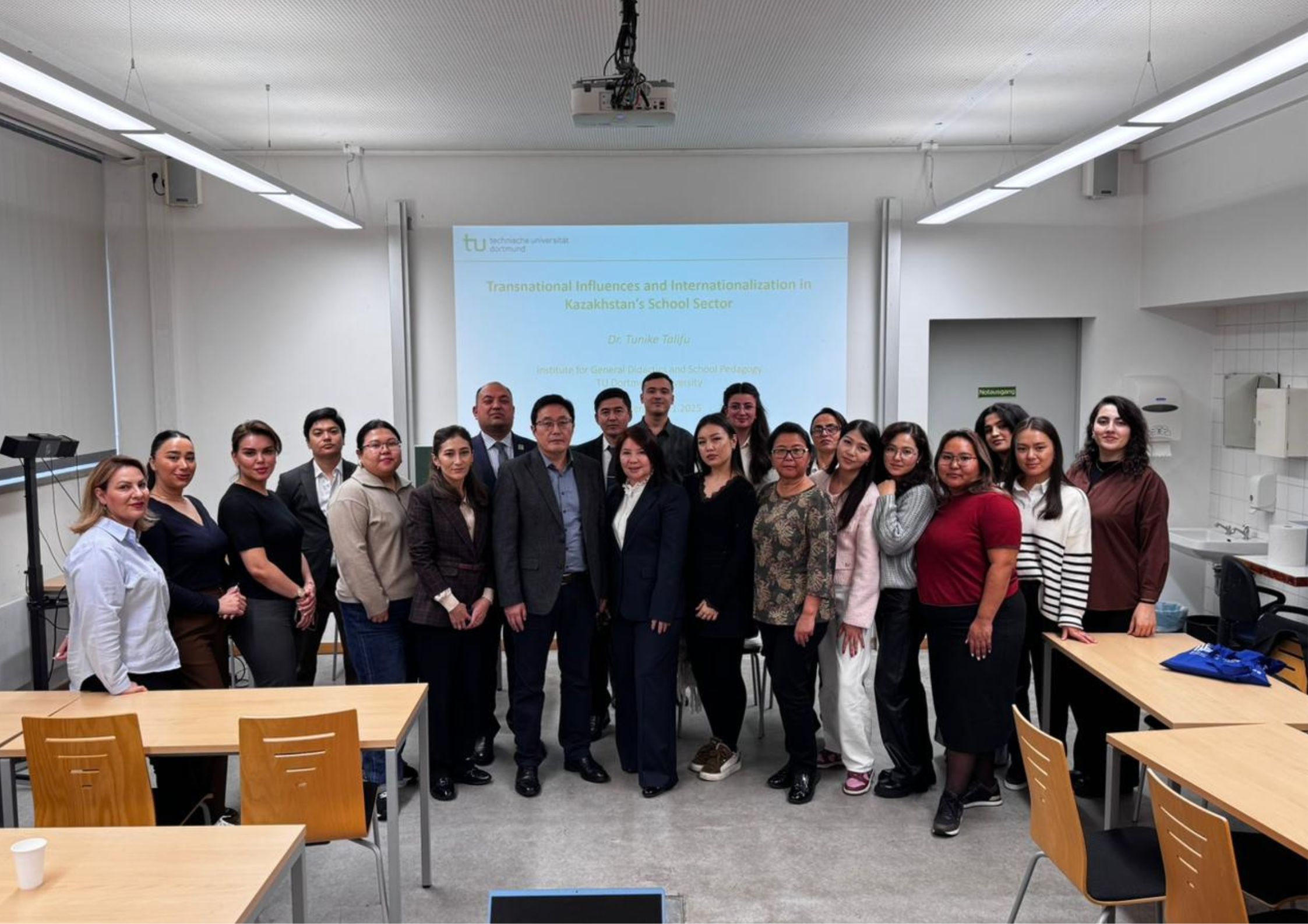 Отдельным событием стала лекция казахстанского профессора, который на текущий момент проходит программу постдокторантуры в университете Дортмунда, Dr. Tunike Talifu, который представил исследование "Transnational Influences and Internationalization in Kazakhstan`s School Sector", раскрывающее современные тенденции интернационализации школьного образования в Казахстане.