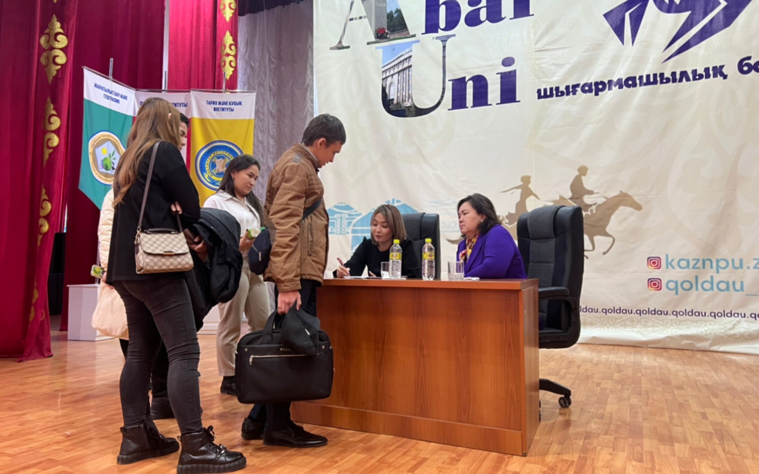 14 ноября 2022 года в Центре карьеры КазНПУ имени Абая состоялась встреча с заместителем директора Департамента мониторинга АО «Финансовый центр» Сериккали Акзирой на тему «Обязательная трехлетняя компенсация труда» с бакалаврами 4-го курса, магистрантами 2-го курса и обучающимися докторантуры 3-го курса. Во встрече приняли участие 1100 выпускников нашего университета.