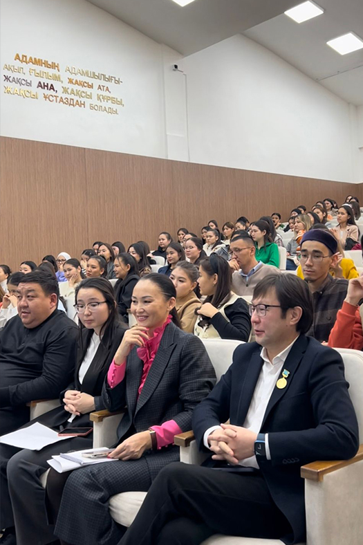Rector Bolat Tlep, who took part in the event, spoke about the works of Akberen Yelgezek, his contribution to the national literature and presented the guest with the jubilee medal of our university.