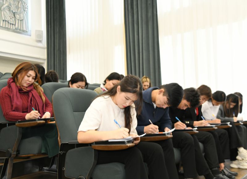 12.11.2025 ПРОЕКТ, ПОДНЯВШИЙ СТАТУС ГОСУДАРСТВЕННОГО ЯЗЫКА, ДОСТИГ СВОЕЙ ЦЕЛИ С 4 по 12 ноября в КазНПУ имения Абая проходил традиционный проект «Национальный диктант». Масштабное мероприятие, организованное по инициативе Международного общества «Казахский язык» и при поддержке Министерства науки и высшего образования РК, успешно завершилось. В проекте написания диктанта приняли участие все уровни сотрудников и студенты университета, начиная от административного управления. В последние годы отмечается сокращение традиции написания диктантов в средних школах. По словам специалистов, «в результате многие школьники готовятся только к тестам, что приводит к снижению грамотности, увеличению орфографических ошибок и снижению языковой культуры». Также это негативно сказывается на интересе к чтению и общем уровне языковой грамотности. Особенностью этого года стало то, что «Национальный диктант» проводился не только в университете, но и онлайн по всей стране, а также среди казахской диаспоры за рубежом. Основная цель проекта – расширение сферы использования государственного языка, совершенствование навыков грамотного письма граждан, повышение языковой культуры молодежи и рост интереса к казахскому языку. Участники регистрировались через сайт «til.kz» и выполняли задания онлайн. Проект реализован по инициативе председателя Международного общества «Казахский язык» Рауана Кенжеханулы и председателя Алматинского городского филиала Болата Анапияулы при поддержке Министерства науки и высшего образования РК. Руководство мероприятием осуществляли руководитель аппарата Жанатбек Ишпекбаев и деканы факультетов, а диктант проводили старшие преподаватели кафедры теории казахского языка и методики его преподавания – Роза Бакбергенова, Жаркынай Коканова, Зейнеп Османова, Улан Тайжанов, Карим Байкутов, Санакжан Самархан. В «Национальном диктанте» активно участвовали преподаватели, магистранты и студенты факультетов Педагогики и психологии, Математики, физики и информатики, Филологии, Естественно-географического, Факультета мировых языков, Факультета физического воспитания и начальной военной подготовки, Искусства, Foundation, Института Сорбонна-Казахстан, а также факультета Истории и права. Уровень грамотности участников оценивался следующим образом: 1–3 ошибки – высокий уровень; 4–7 ошибок – сформированные языковые навыки; 7–12 ошибок – рекомендуется регулярная практика; 13 и более ошибок – дополнительная работа с языковыми специалистами. По итогам диктанта участникам будут вручены специальные сертификаты и благодарственные письма. Кроме того, все участники получат электронное благодарственное письмо и бесплатную подписку на приложение KITAP. По словам организаторов, в последние годы устный стиль письма среди молодежи оказывает сильное влияние на естественные нормы казахского языка. Поэтому возрождение традиции написания диктантов является важным шагом в сохранении и развитии национальной языковой культуры.